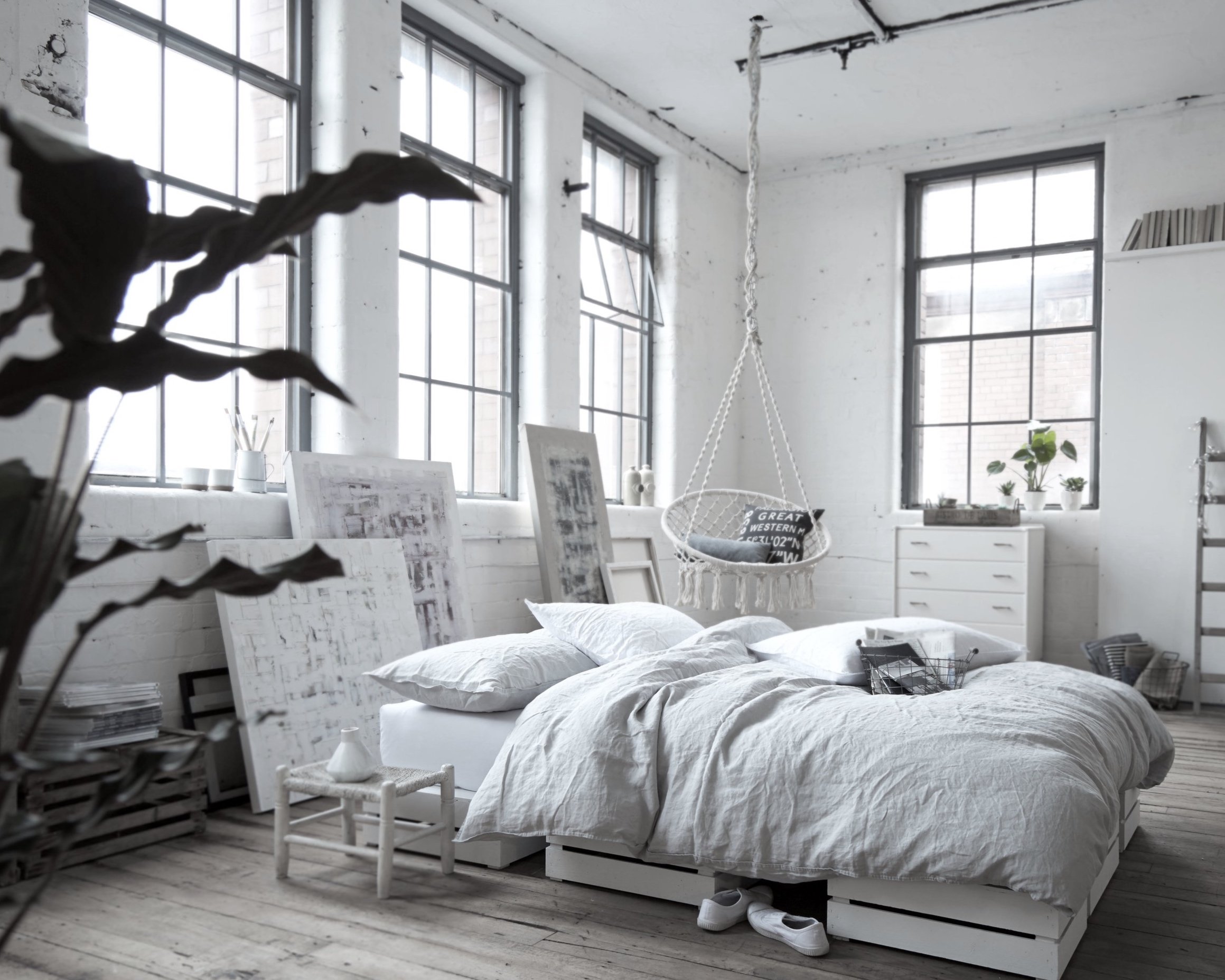 this old mill was a perfect location for this studio apartment look. what a beautiful original floor!